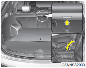 Pull the rear seat back folding lever out. The rear seat back will be folded. If you pull the left side lever (1) out, left side seat back and center seat back will be folded. If you pull the right side ...