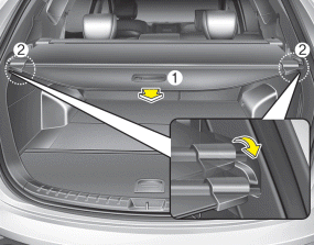 1. Push in the guide pin. 2. While pushing the lever, pull out the cargo security screen. 3. Open the luggage tray and keep the cargo security screen in the tray. ...