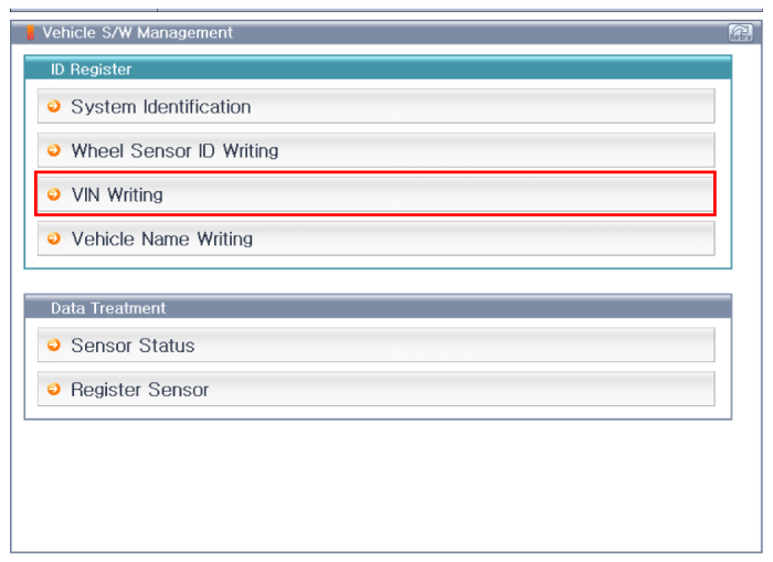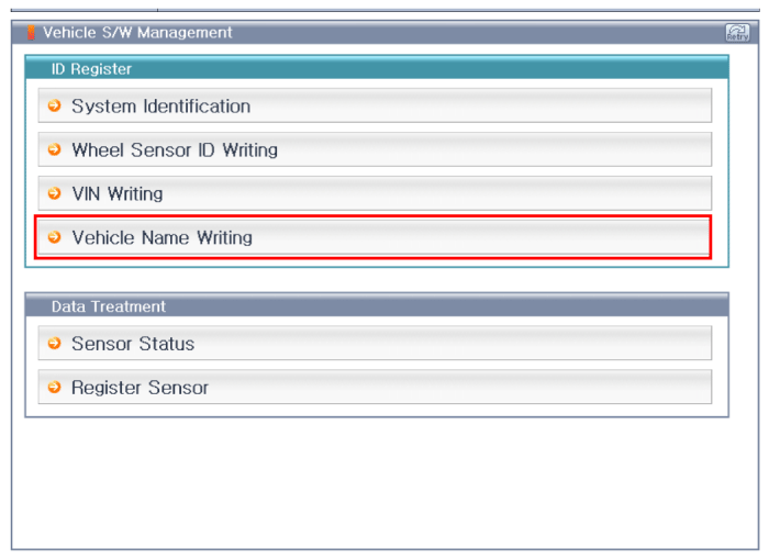 [Wheel Sensor ID Writing (Wireless) initialization]