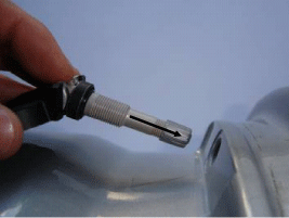 The valve during transportation (air inlet portion of the silver)