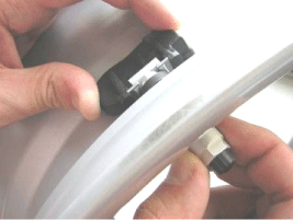 While tightening the nut on the valve as not to deviate from the
