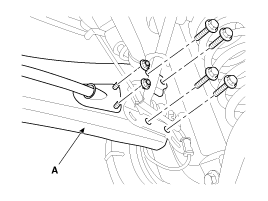 Loosen the mounting bolt and then remove the trailing arm (A)