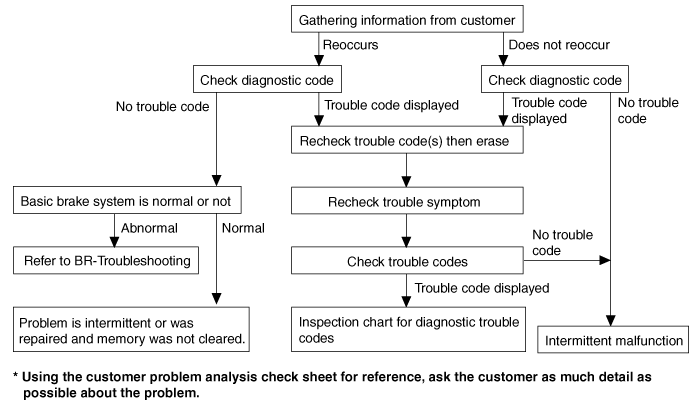 Brake operation varies depending on driving conditions and road surface conditions, so diagnosis can be difficult. However if a normal DTC is displayed, check the following probable cause. When the problem is still occurring, replace the ESC control module.