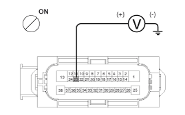 Turn the ignition switch ON, measure the voltage between terminal 29 of the ESC control module harness side connector and body ground.