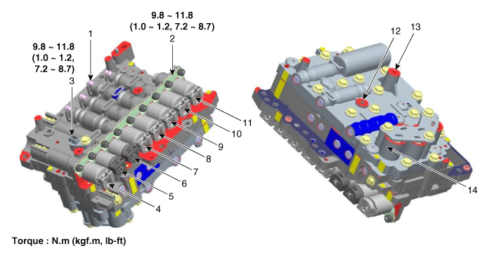 Hyundai Santa Fe: Valve Body. Components and Components Location - Hydraulic System - Automatic Transaxle SystemHyundai Santa Fe: Valve Body. Components and Components Location