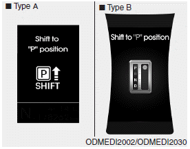 • This warning message illuminates if you try to start the engine with the shift lever not in the P (Park) or N (Neutral) position.