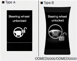 - This warning message illuminates if the steering wheel does not unlock normally when the Engine Start/Stop Button is pressed.