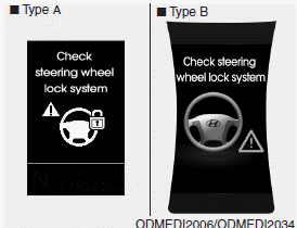 • This warning message illuminates if the steering wheel does not lock normally when the Engine Start/Stop Button changes to the OFF position.