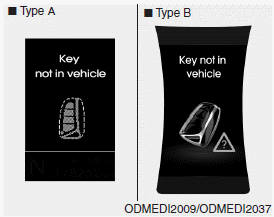 - This warning message illuminates if the smart key is not in the vehicle when you press the Engine Start/Stop Button.