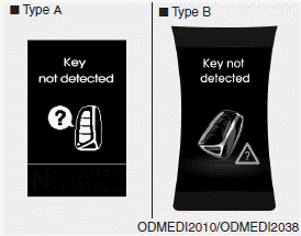 • This warning message illuminates if the smart key is not detected when you press the Engine Start/Stop Button.