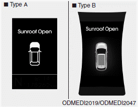 • The warning message illuminates if you turn off the engine and then open the driver's door when the sunroof is open.