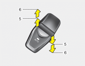 To open or close a window, press down or pull up the front portion of the corresponding switch to the first detent position (5).